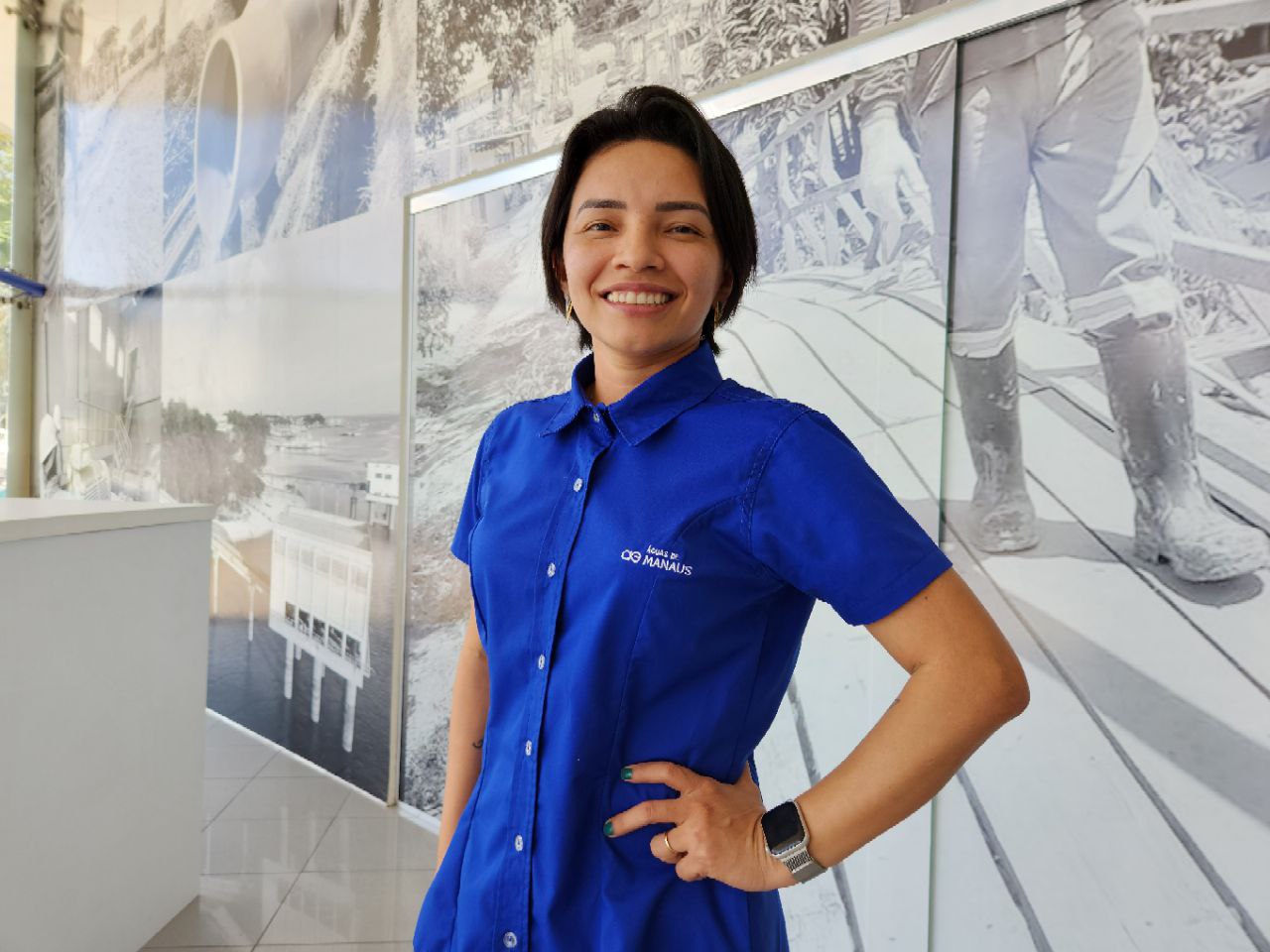 A engenheira civil e coordenadora de Serviços, Nayara Oliveira, já esteve à frente de projetos de distribuição de água que contribuíram para a universalização do serviço em Manaus. Já no quesito esgoto, participou de obras de Estações de Tratamento de Esgoto (ETEs) e hoje é responsável pela execução de serviços de ampliação de rede de esgoto na cidade.