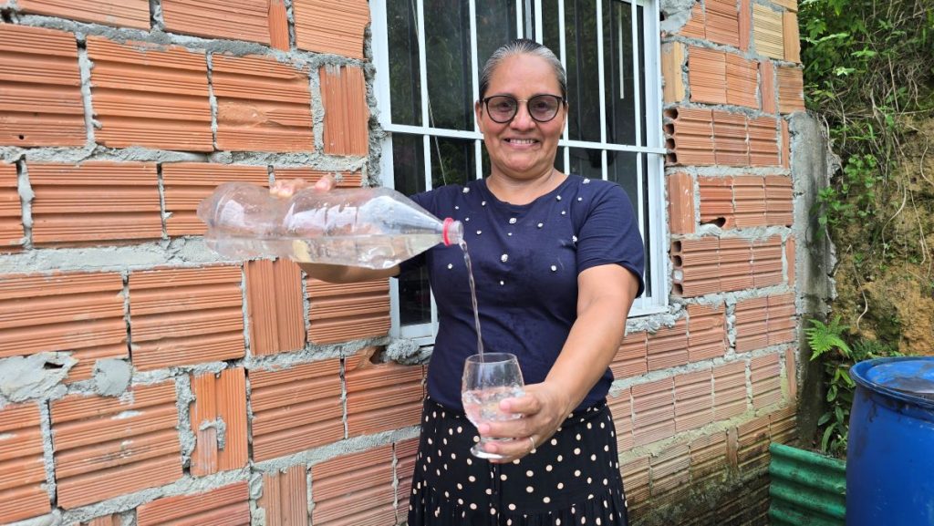 “Eu preciso bastante de água porque trabalho com refeição, fazendo marmita, e enfrentava uma grande dificuldade, pois só tinha água um dia sim e um dia não. Hoje eu tenho água na minha torneira todos os dias, na hora que eu quero e preciso. Posso lavar minha roupa, receber meus netos em casa sem preocupação. É a primeira vez que vou ter um comprovante de residência. Até hoje eu precisava ir à delegacia para pegar uma declaração para tirar documento, matricular meus netos. Agora vai melhorar tudo. É uma vida nova!”, afirma.