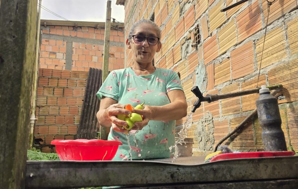 A chegada da nova estrutura também trouxe impacto na geração de renda e na dignidade das famílias. Maria Helenani, de 60 anos, vive na comunidade Canaã desde o início da ocupação e trabalha com a produção de marmitas. Para ela, a regularização do abastecimento representa mais do que conforto: significa segurança e cidadania.