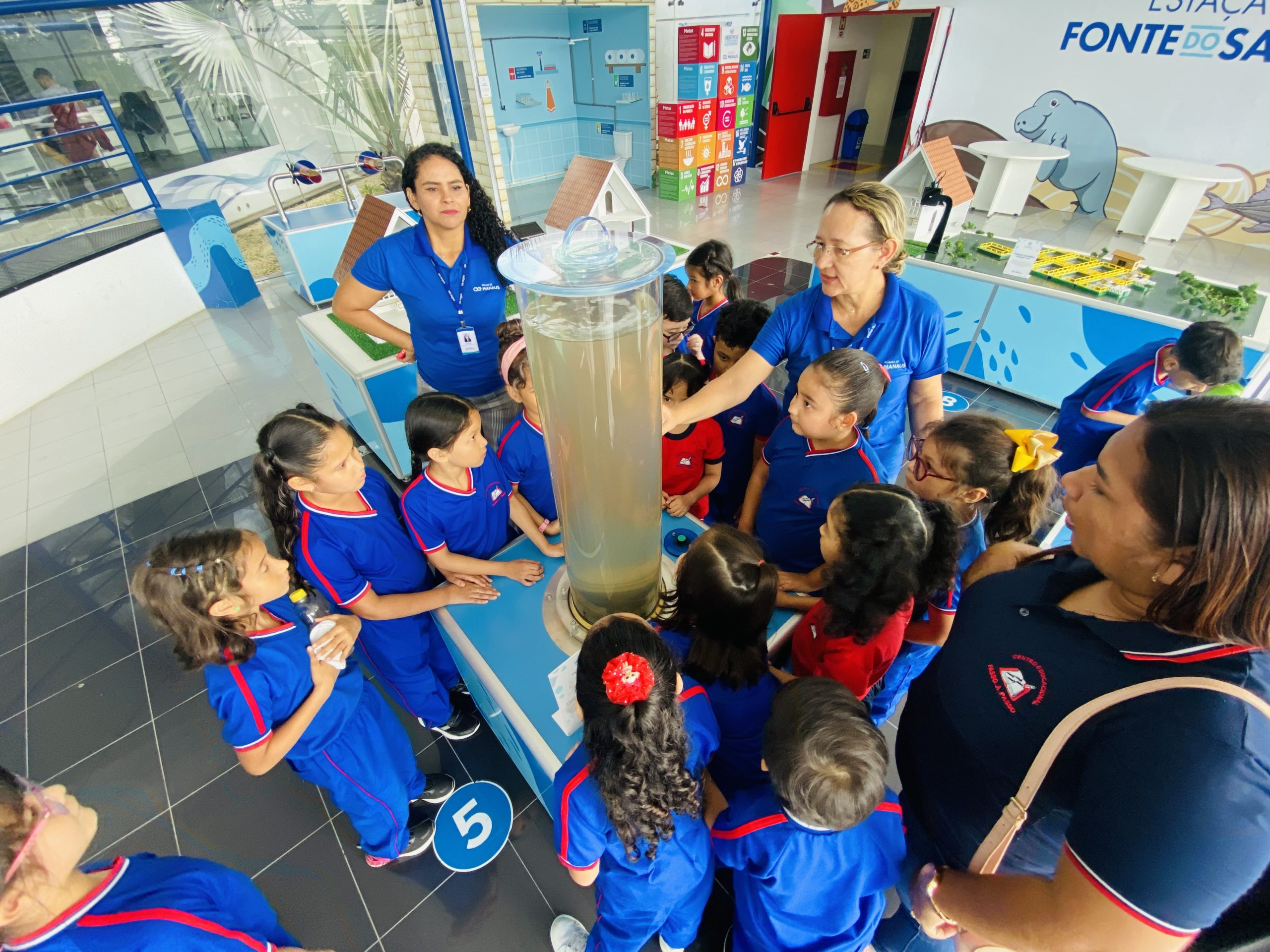 Os grupos também conhecem as diferenças entre as redes de água tratada, esgoto e água pluvial, por meio de equipamentos que reproduzem os processos utilizados no tratamento de efluentes. A visita inclui ainda simulações que ajudam a compreender o consumo de energia nas unidades de tratamento de água e esgoto.